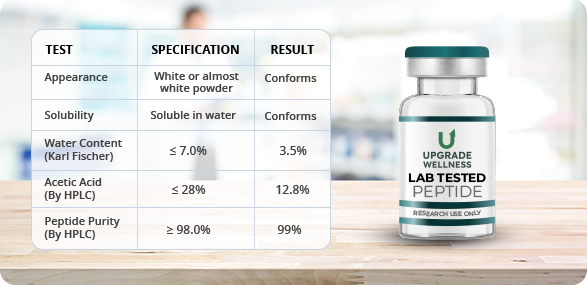 Upgrade Wellness specializes in providing premium quality, lab tested research peptides that are fully backed by a Certificate of Analysis (COA), assuring the highest standards of quality, purity, and efficacy to ensure optimal results.